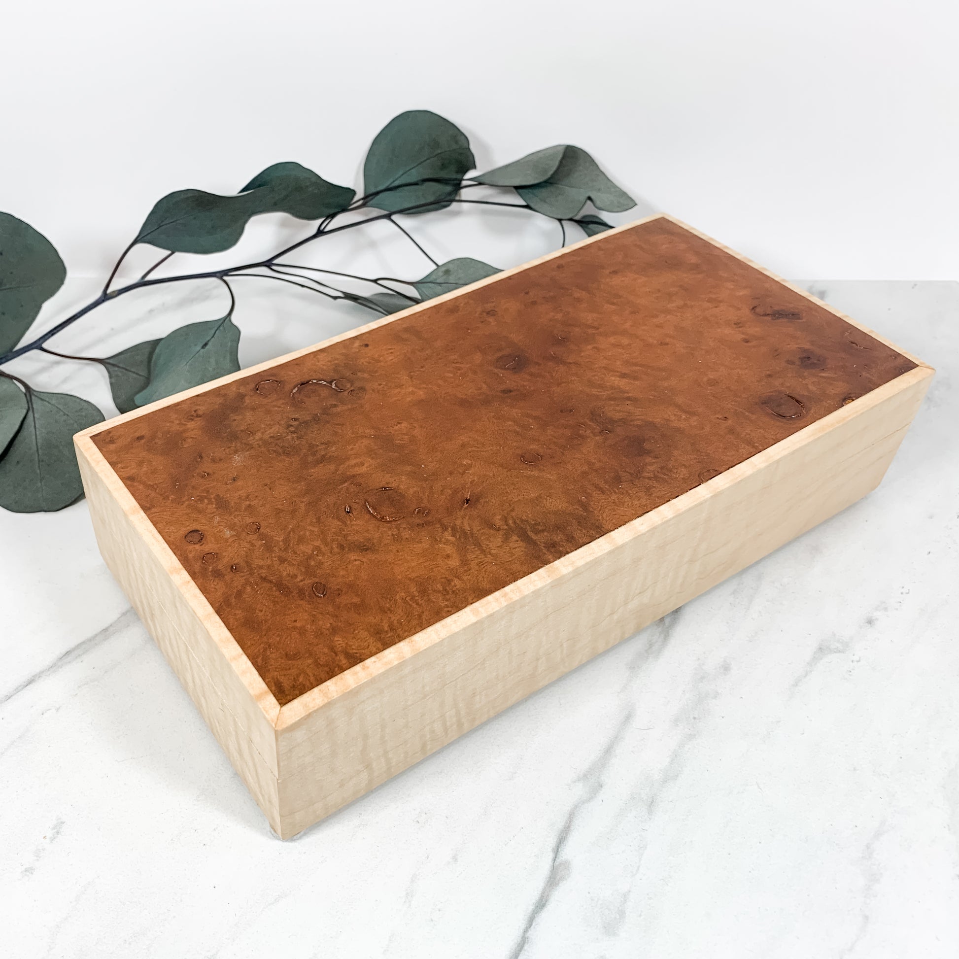 Camphor Burl and Curly Maple Box-Personalized Keepsake Box-7756