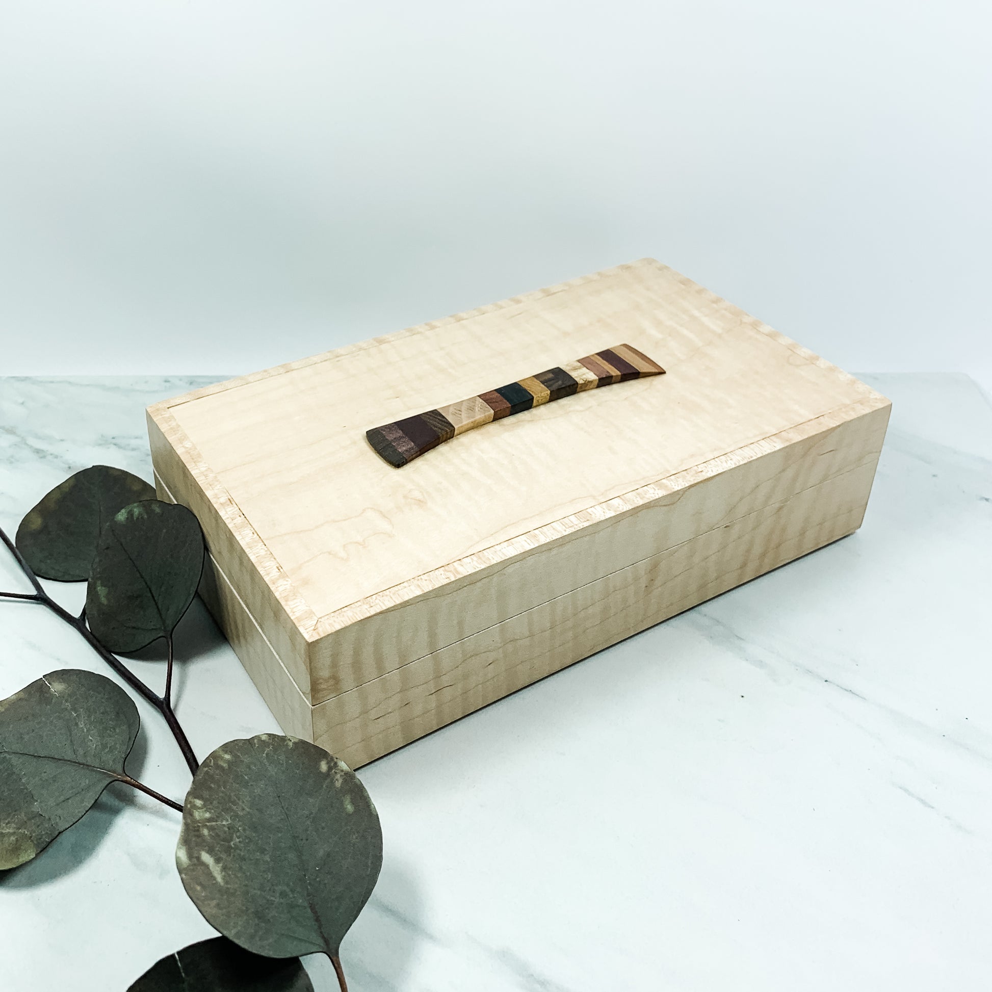 Curly Maple Box with Multi-Wood Decorative Accent Keepsake Box-7865