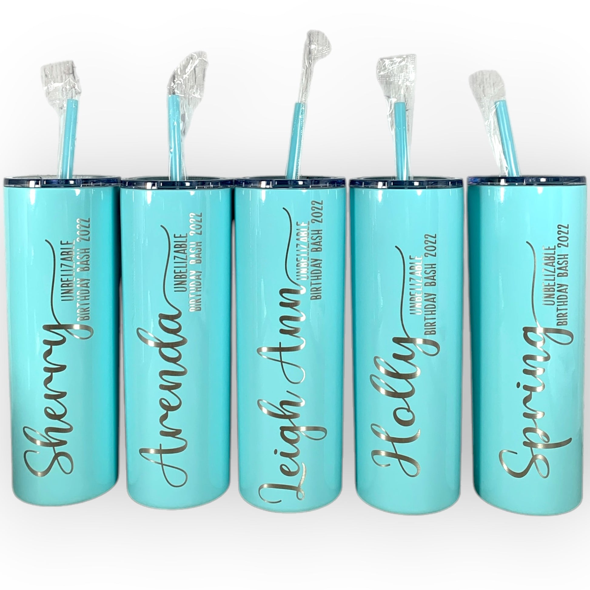Laser Engraved Personalized 20 oz. Skinny Tumbler-Personalized Tumbler w/ Straw-Girls Trip-Vacation-Trip Tumbler-Teacher Gift-Spring Break