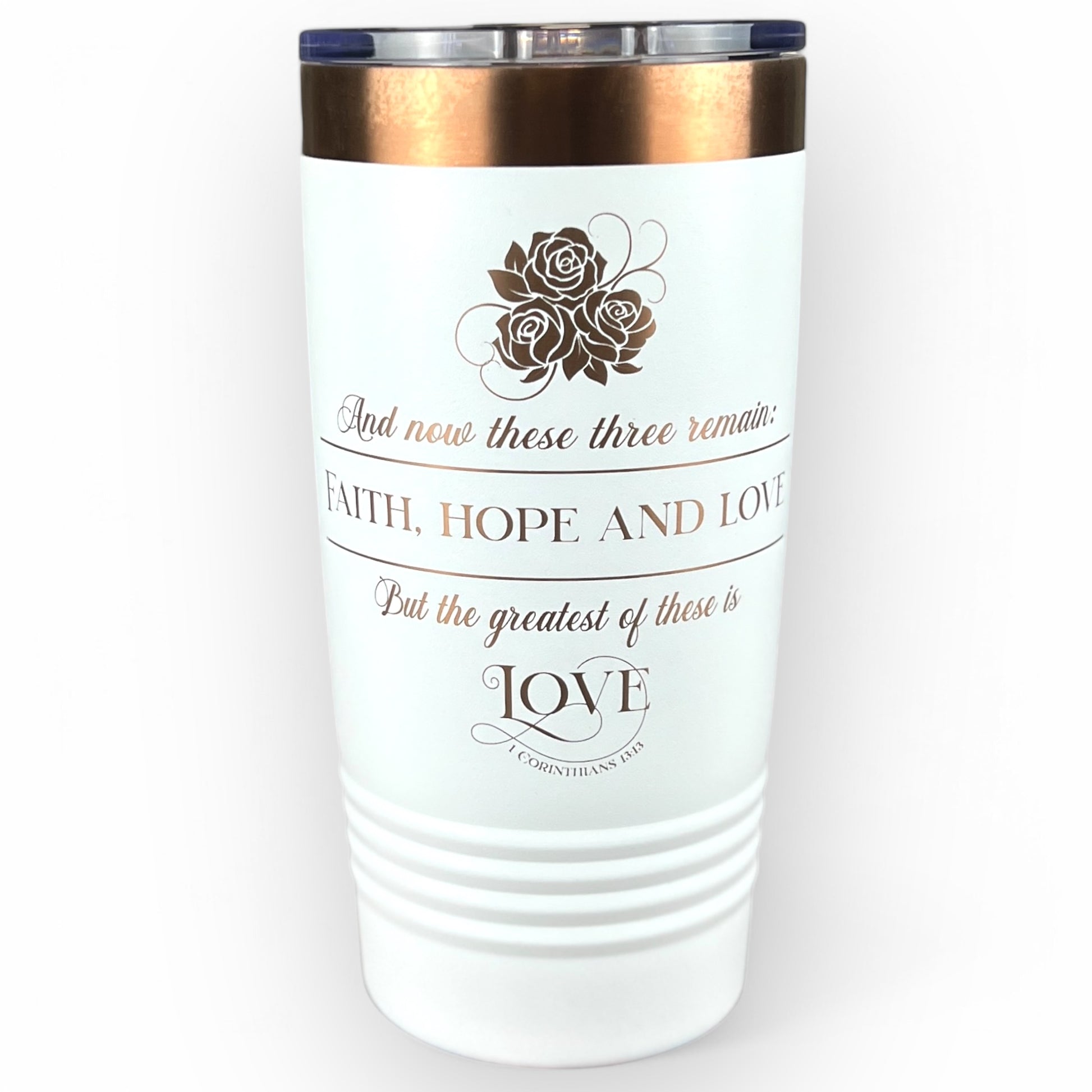Laser Engraved Tumbler -Christian Insulated Tumbler-1 Corinthians 13:13-Faith Hope Love-Faith Based Gift-Bible Verse-Religious Gift