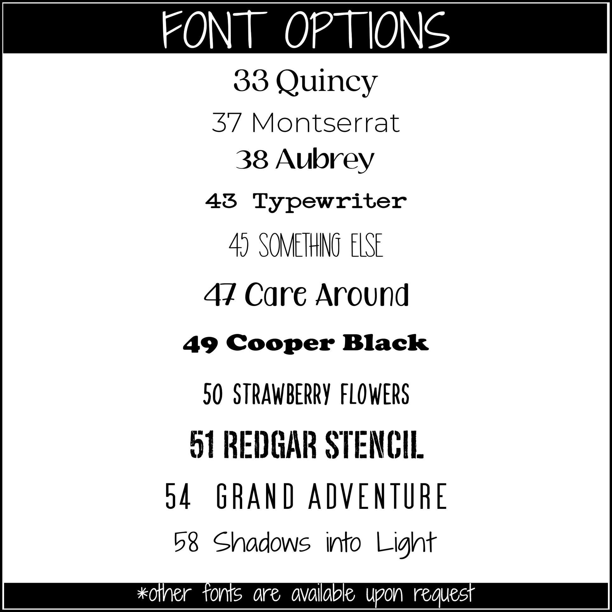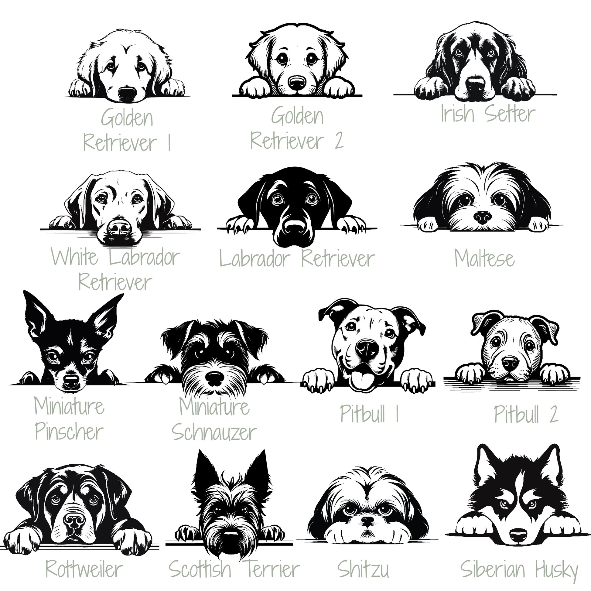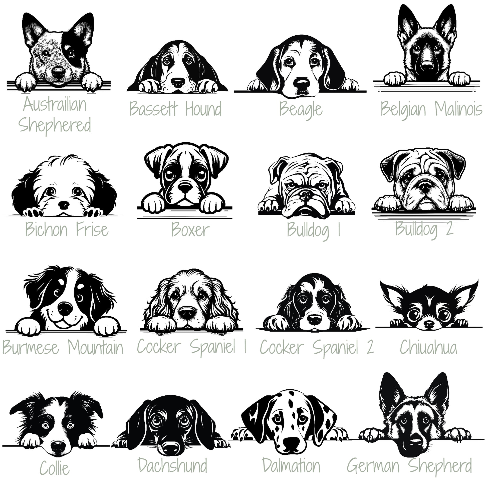 *Additional breeds and fonts are available. Just let us know what you're looking for!